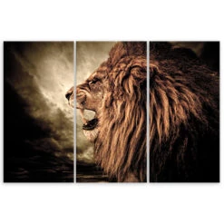 3 Piece Canvas Print, African Lion Animals Nature