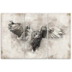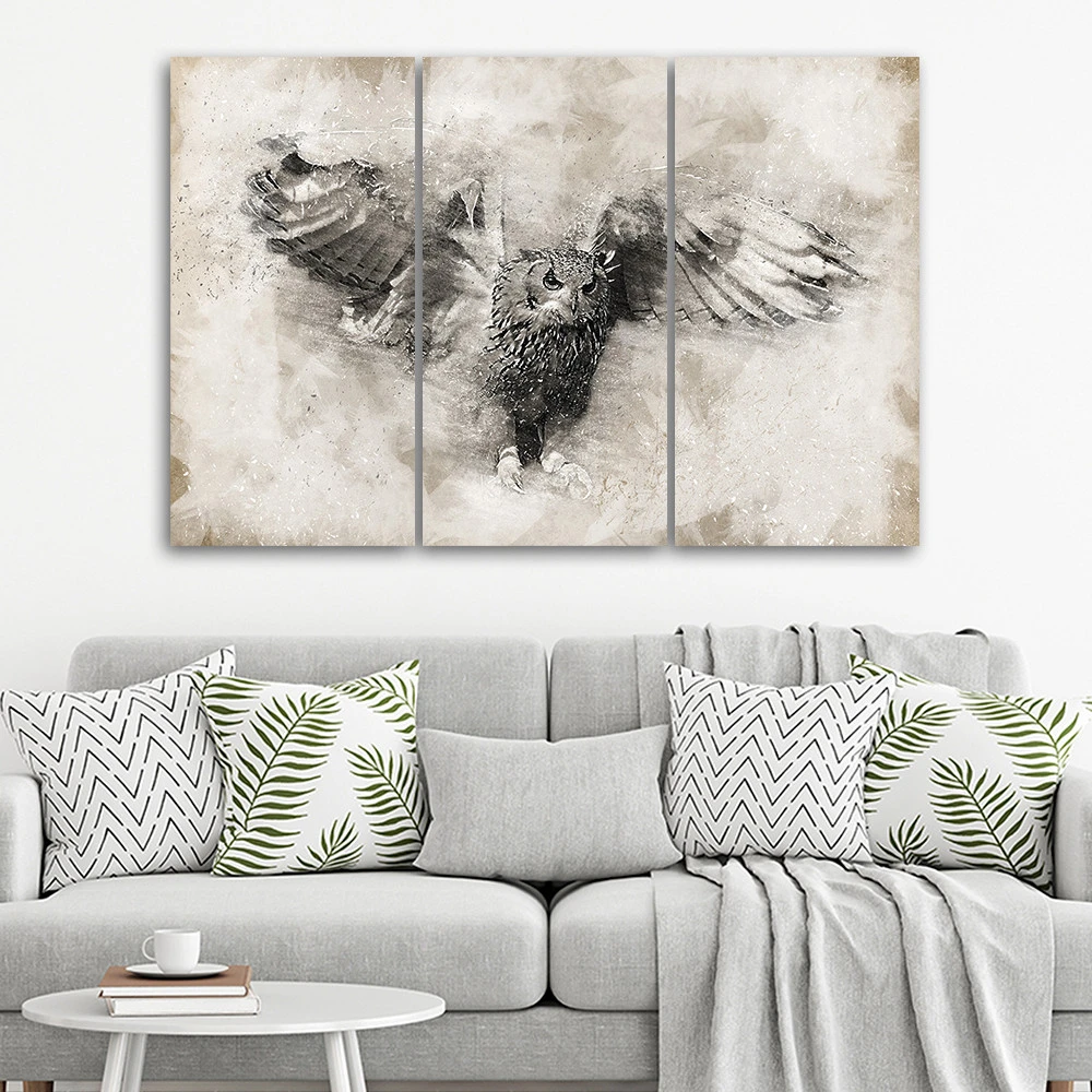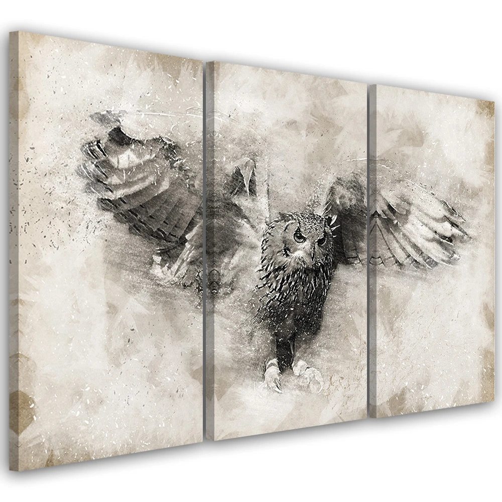 3 Piece Canvas Print Owl Birds Gray Vintage