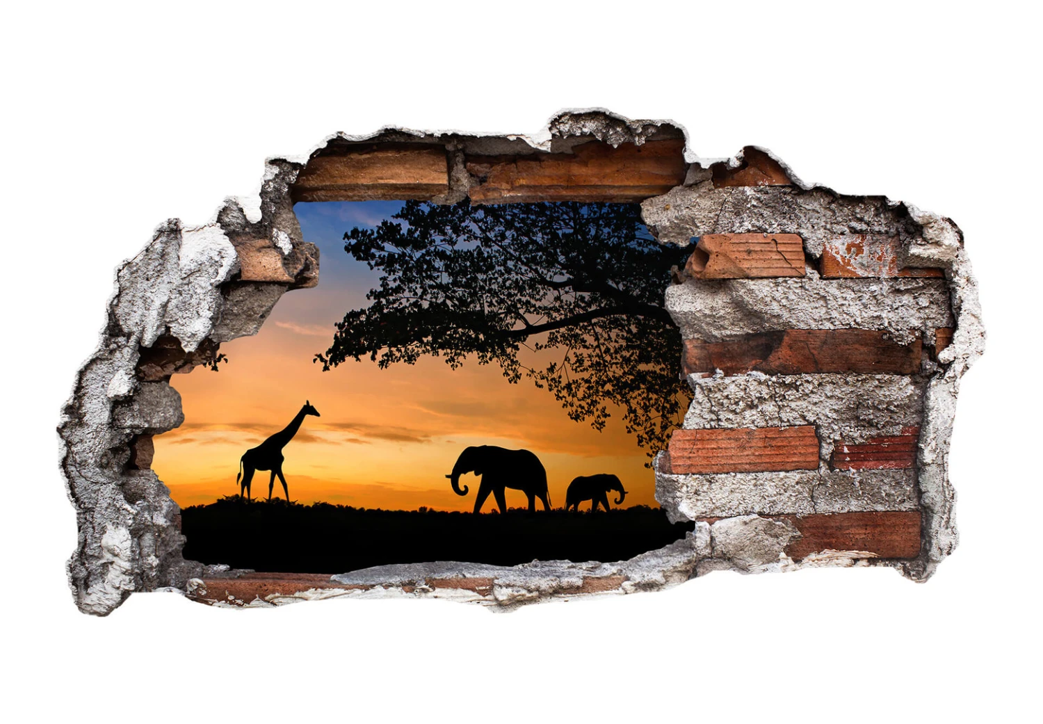 A 3D wall sticker of a sunset in Africa which seems to jump right to you! This wall art sticker in 3D look is available in various sizes.