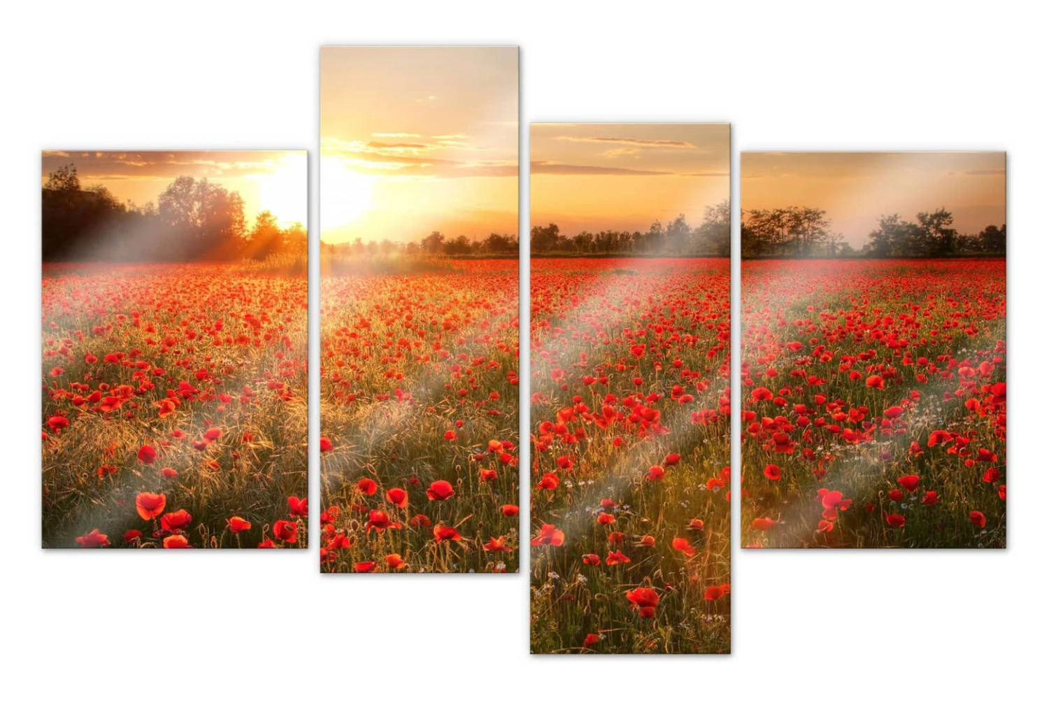 The field of poppies in the sunset shows a wonderful romantic design. Decorate your home with this beautiful wall picture and other decoration accessoires.