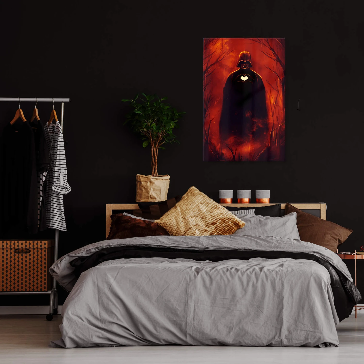 Long ago, in a galaxy, far, far away … a young man named Luke Skywalker goes into a galactic battle against the empire and the dark Darth Vader. Who doesn’t know him, the dark horror ruler of the Star Wars universe. But is he really evil from the ground up or is there a small pounding heart in him too? With this fantastic illustration of the angry master, you will surely find out!??The brothers Francis and Laurence Minoza come from the island of Cebu in the Philippines and started their art project “Nicebleed” in 2008. Since then they have been creating their works in digital form, classically drawn or in a mix of both art forms. Famous people, animals, nature, pop art and surrealism – they leave almost nothing out and provide exciting and varied illustrations that set a visual highlight on the wall.??The acrylic glass picture is available in different sizes.