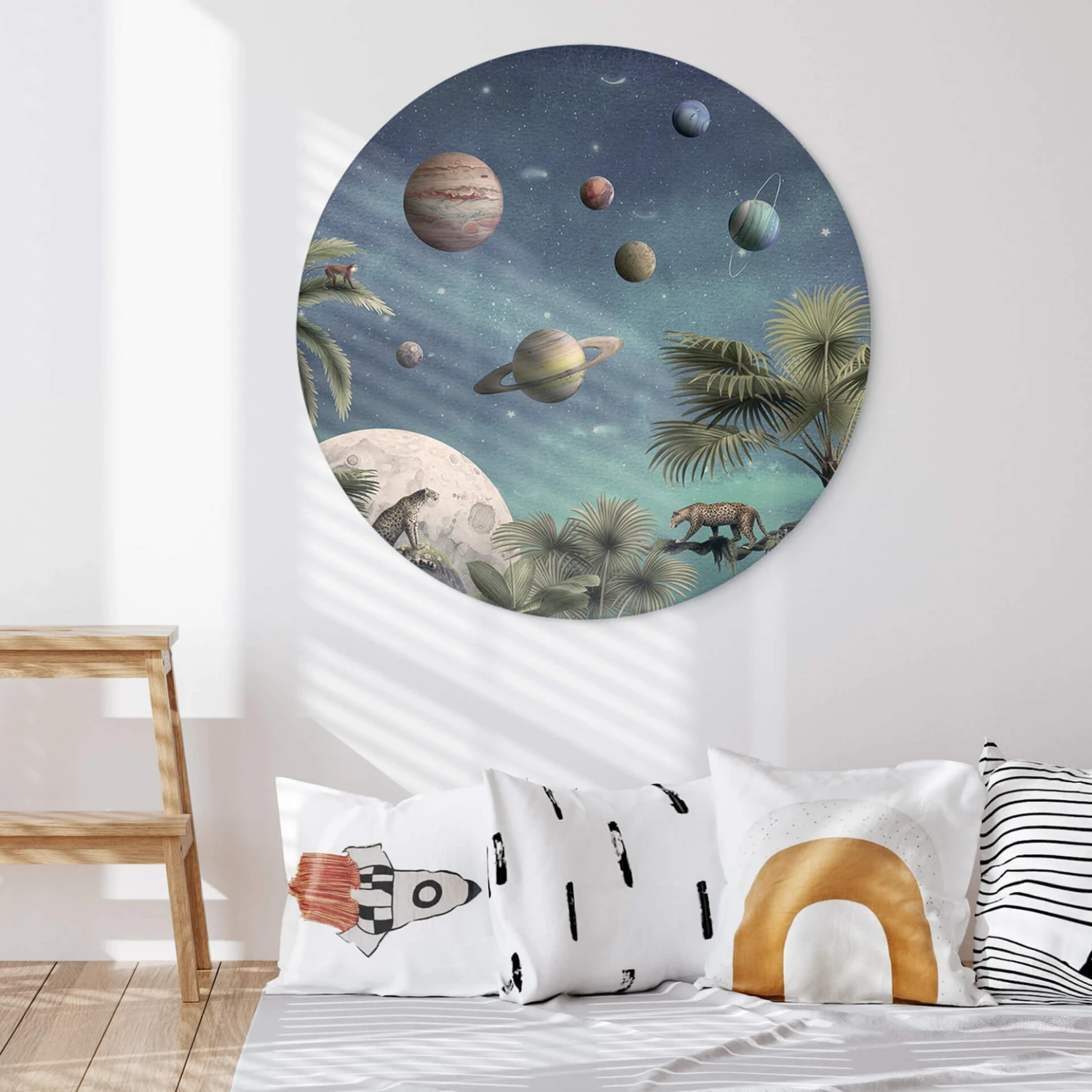 Alu-Dibond Wall Circle Kikki Belle – Tropical Fantasy in Space