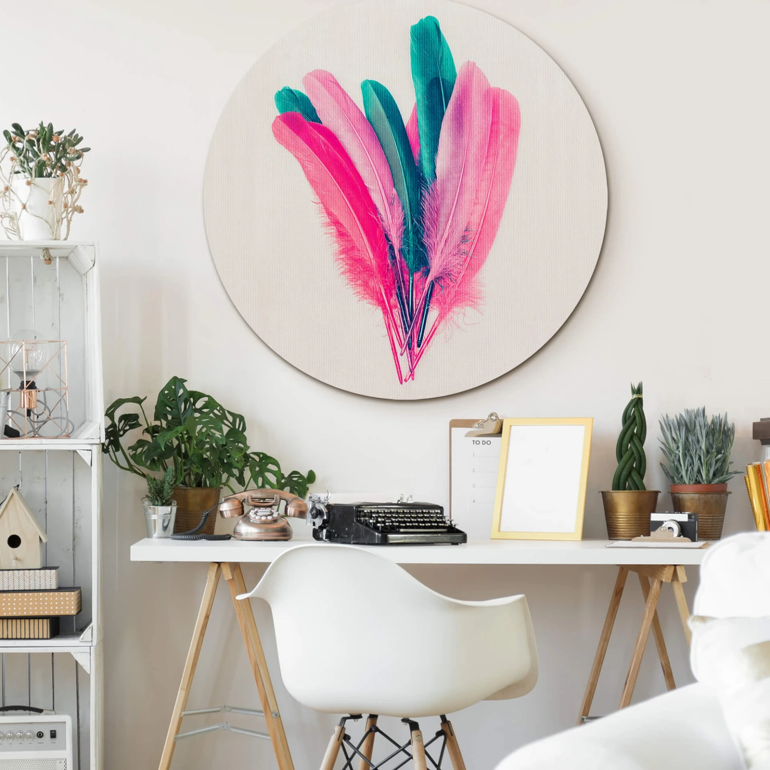 Alu-Dibond Wall Circle Kubistika – Bouquet of Feathers