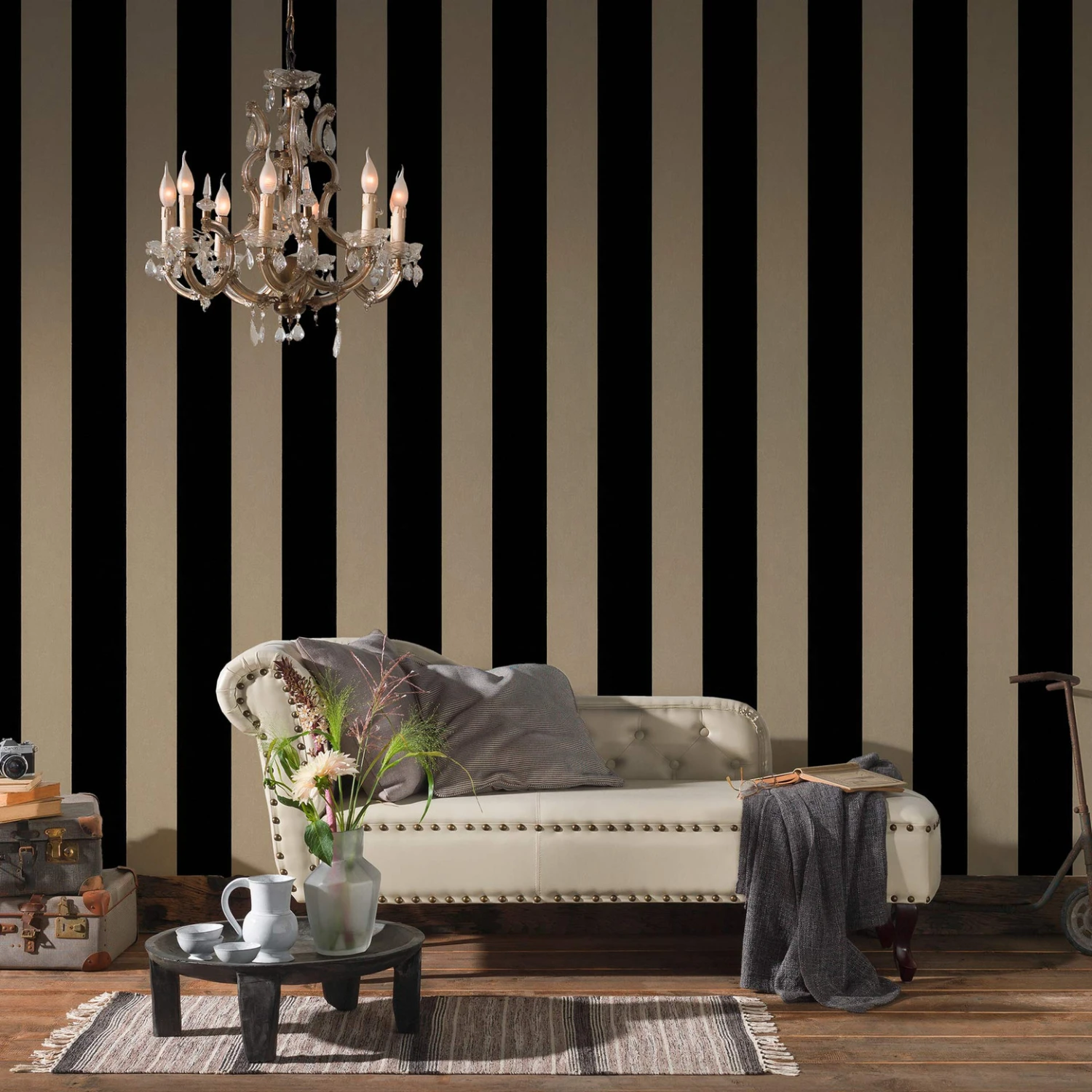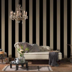 Architects Paper Non-woven Wallpaper With Real Flock Castello Black, Metallic