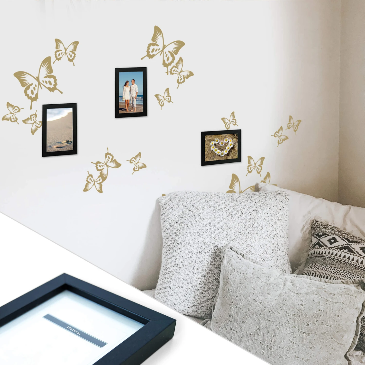 We offer you a possibility to combine your own favourite photos in cool frames with a wall decal! If 5 frames are not enough for you, you can order additional ones.