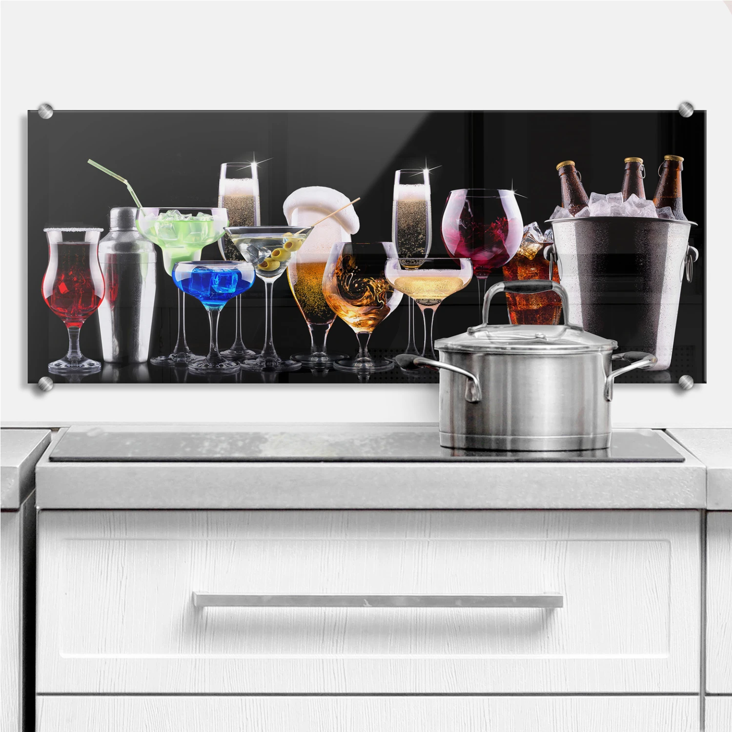 Cocktails are great! Wether you prefer the classics like Manhattan or Mojito or are more experimental with a Long Island Ice Tea – Everyone has got their favourite and they all taste great in their own way. The colours are fantastic and it’s great fun to try and find out what the ingredients are! Some are made with cream, others are based on fruit juices and some of the best are even alcohol free! Whatever your favourite is – our Cocktail Feeling Panorama Kitchen Splash back is not only practical, but will also get you into the mood for shaking that shaker!