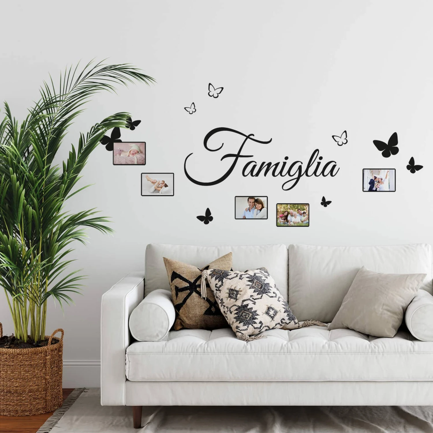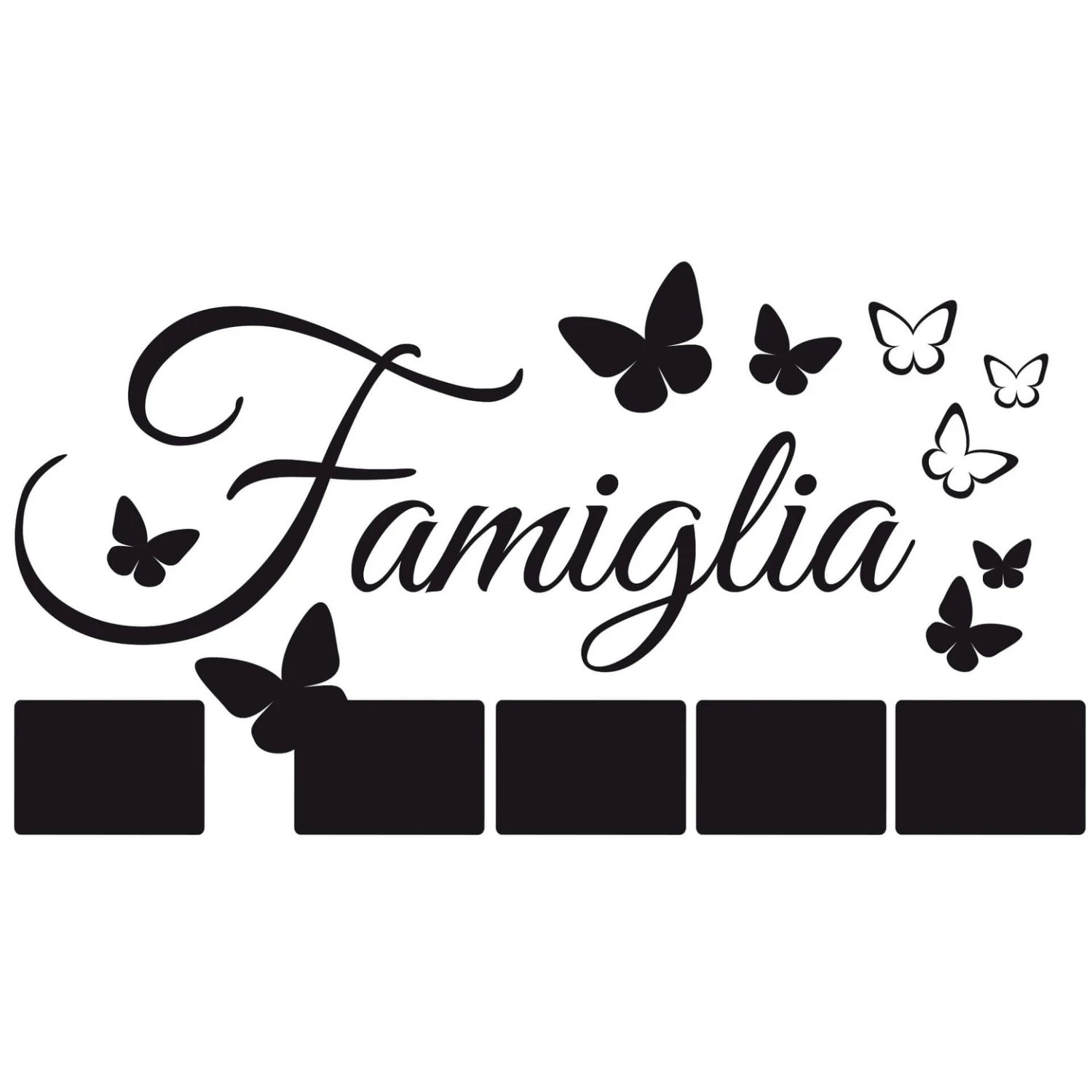 This wall sticker in Italian has room for your own pictures. It is available in four sizes and in various colours.Â