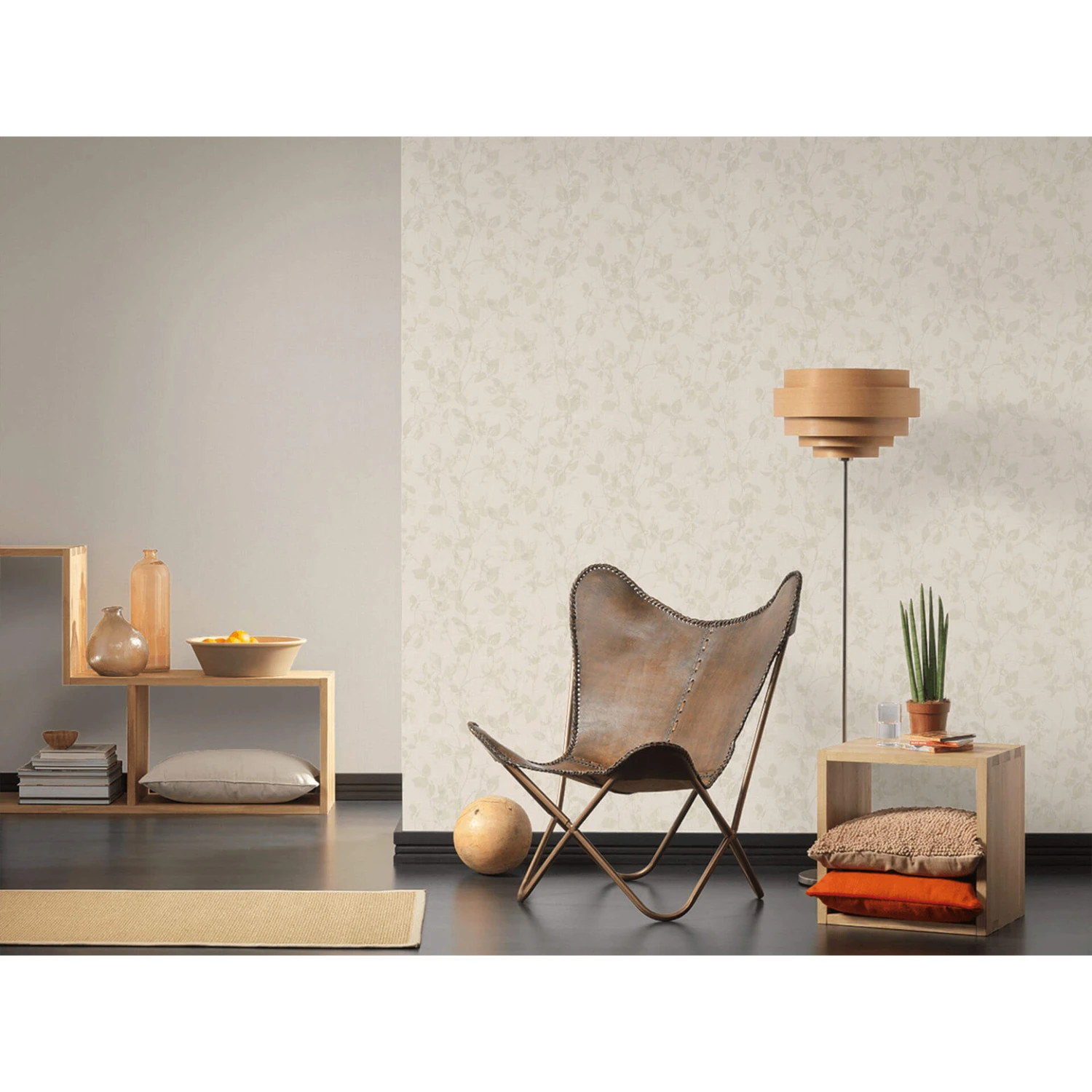 Floral Wallpaper In Beige And Grey With Leaf Motif Non-woven Wallpaper Hygge