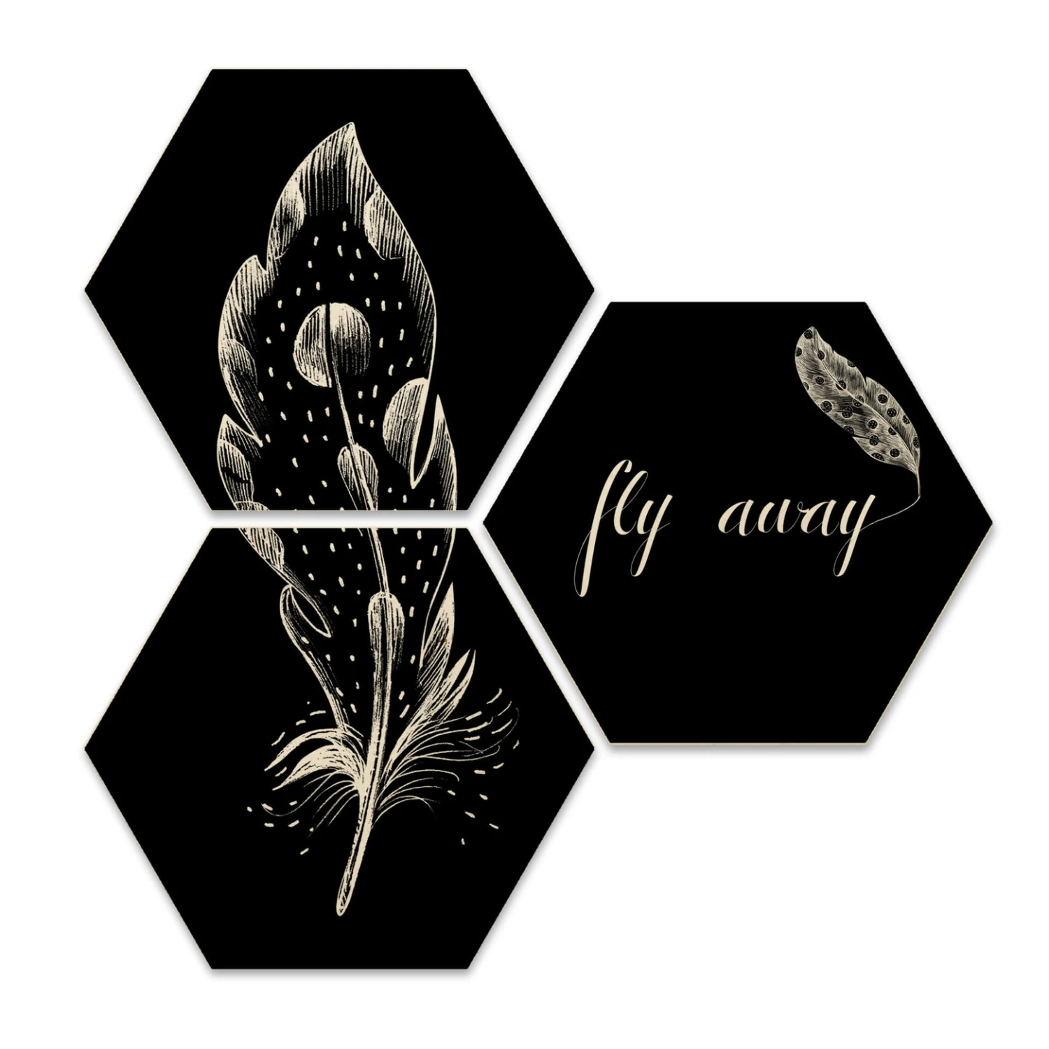 Decorative prints on birch wood veneer. The set of 3 hexagon wall prints looks good in any interior.