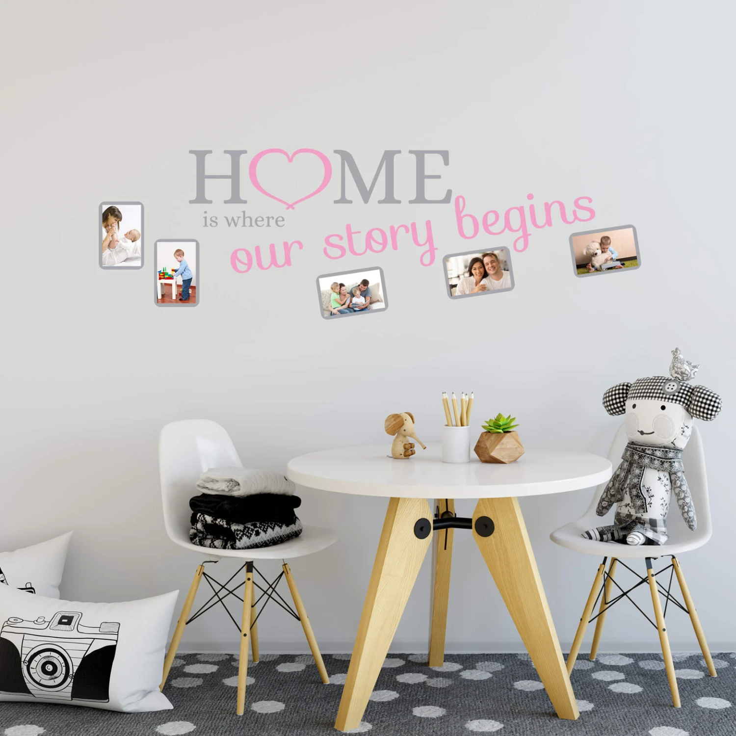 This wall sticker is available in six different sizes and in various colours. You can choose your two favourite colours. Complete this wall decoration with your own pictures.Â