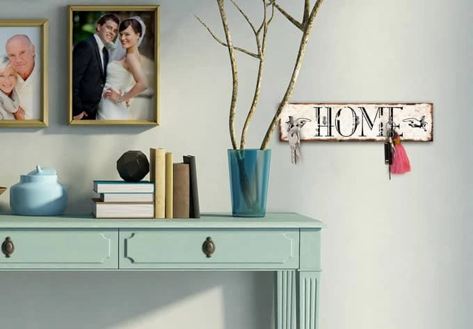 For a fast and easy wall mounting the hooks are already applied to the back. Five stainless hooks are included and to make the installation of these hooks as easy as possible for you, we have pre-drilled the holes for you!