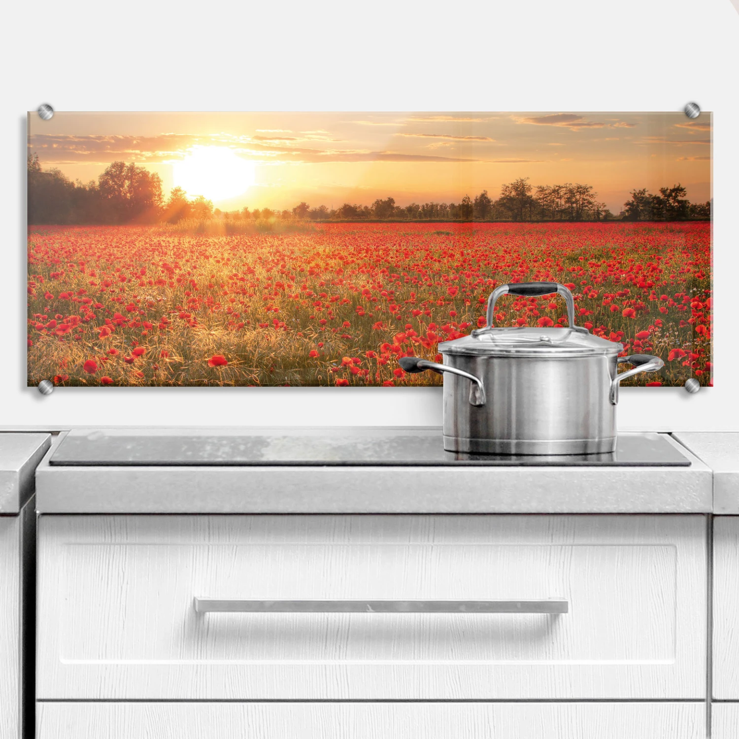 A beautiful field of saturated red poppies, slowly rocking in the wind – there is not much that is more beautiful than this. Poppies are a symbol of peace and remembrance of soldiers that have fallen during the countless wars. Sadly, poppies are also officially considered a weed, but we think that this is a shame! We have created this Poppy Field in Sunset Panorama Kitchen Splash back for all the lovers of wild flowers and for the people who can admire the simple beauty of Mother Nature’s creations.