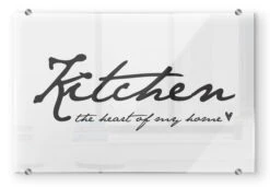 A beautiful transparent kitchen backsplash:’Kitchen the heart of my home’. Available in various sizes and easy to clean.