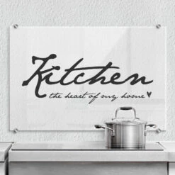 A beautiful transparent kitchen backsplash:’Kitchen the heart of my home’. Available in various sizes and easy to clean.