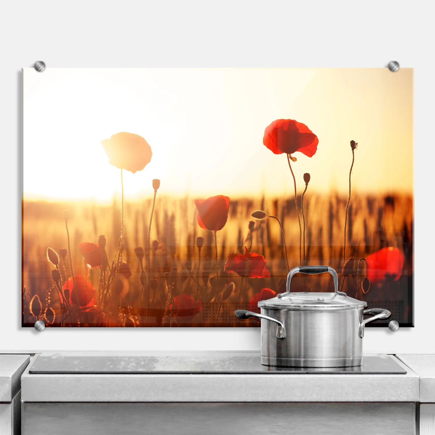 What a great photograph, the lush and red poppies in the light of the sunset. The corn in the background looking like they are soldiers, protecting those precious flowers from any danger there may be. The orange light is so stunning, it is almost out of this world and we think this would look great in your kitchen, too! No matter whether you have a country house style or modern kitchen. Poppies are timeless and go with any interior!
