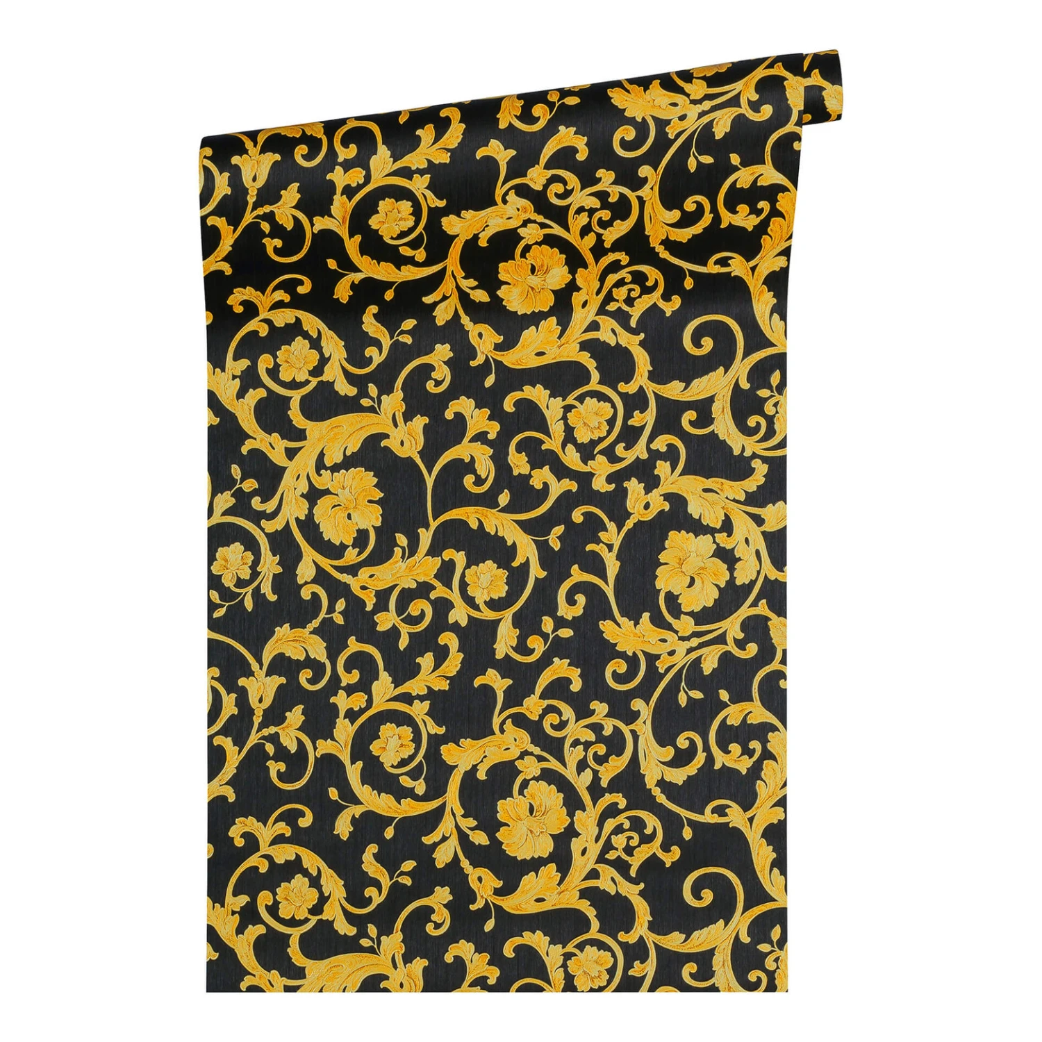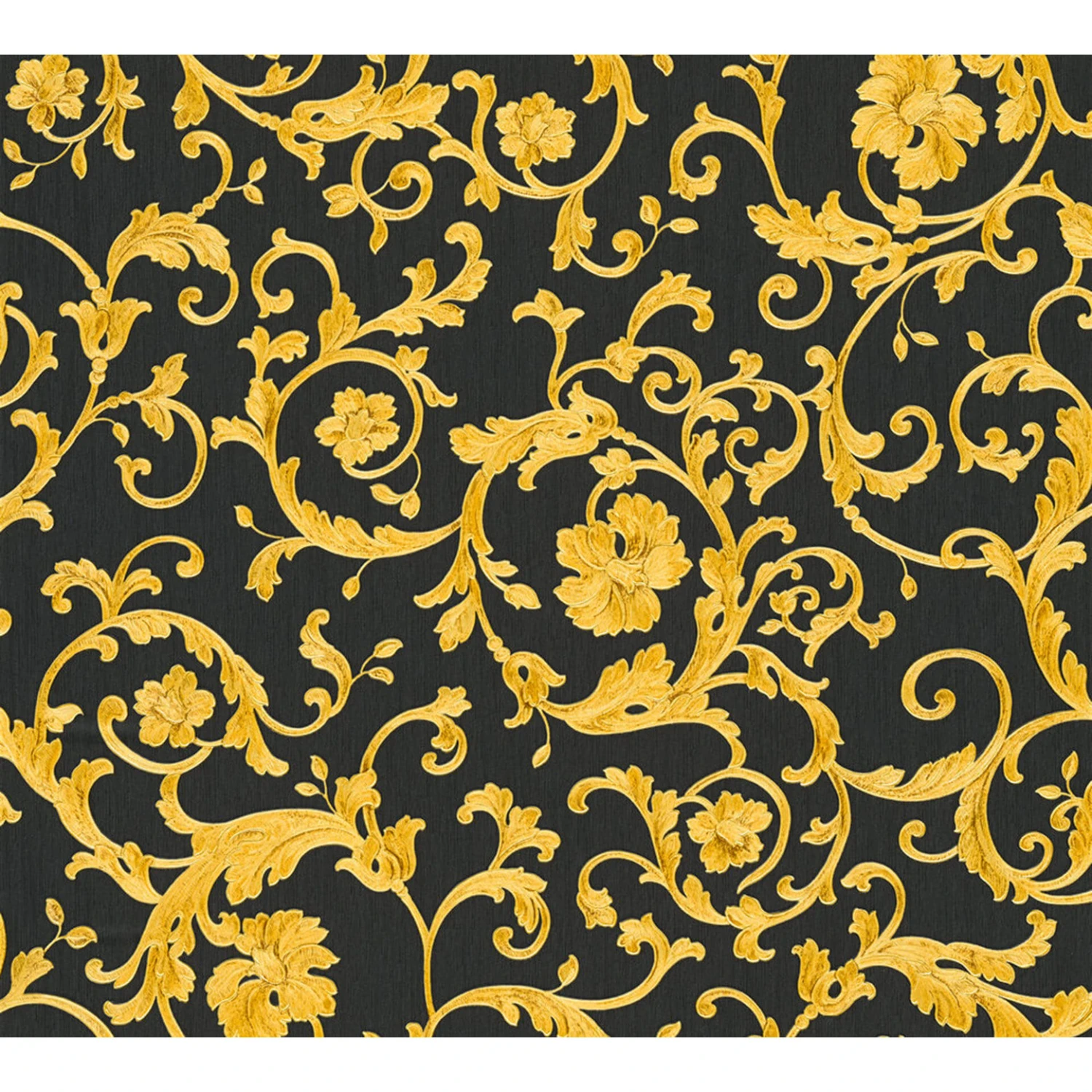 Versace Wallpaper Non-woven Wallpaper Butterfly Barocco Yellow, Metallic, Black
