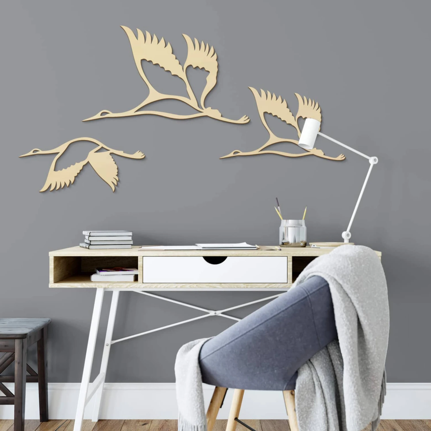 Decorative wall art made of wood. Available in different sizes. Size 1 Bird 1: 30×13 cm Bird 2: 40×23 cm Bird 3: 30×17 cm .Size 2 Bird 1: 30×16 cm Bird 2: 50×29 cm Bird 3: 38×22 cm .Size 3 Bird 1: 45×20 cm Bird 2: 60×35 cm Bird 3: 45×26 cm .Size 4 Bird 1: 60×26 cm Bird 2: 80×47 cm Bird 3: 60×35 cm .Size 5 Bird 1: 75×33 cm Bird 2: 100×58 cm Bird 3: 30×44 cmÂ