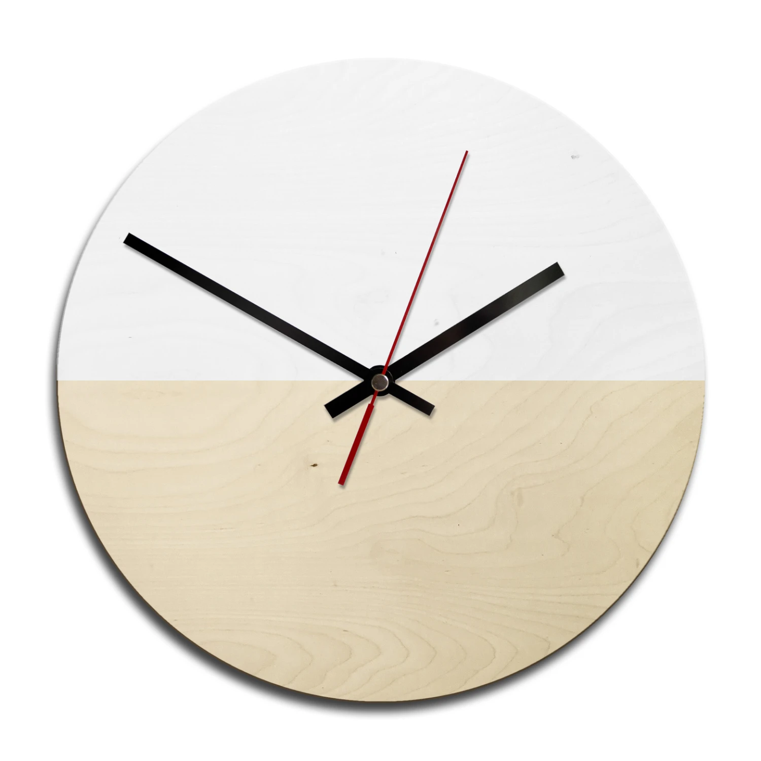 This 28 cm wooden clock is made of 9 mm thick birchwood. Works on a 1,5 V AA battery (not included).