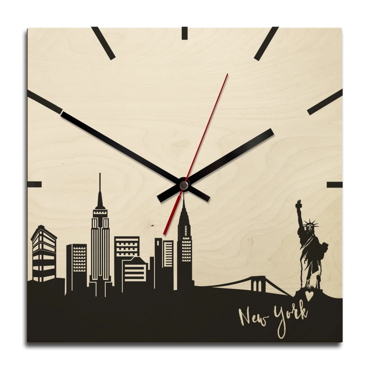 This 28 x 28 cm wooden clock is made of 9 mm thick birchwood. Works on a 1,5 V AA battery (not included).